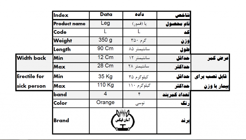 قابل نصب برای بیماران با وزن ۳۵ تا ۱۱۰ کیلوگرم
